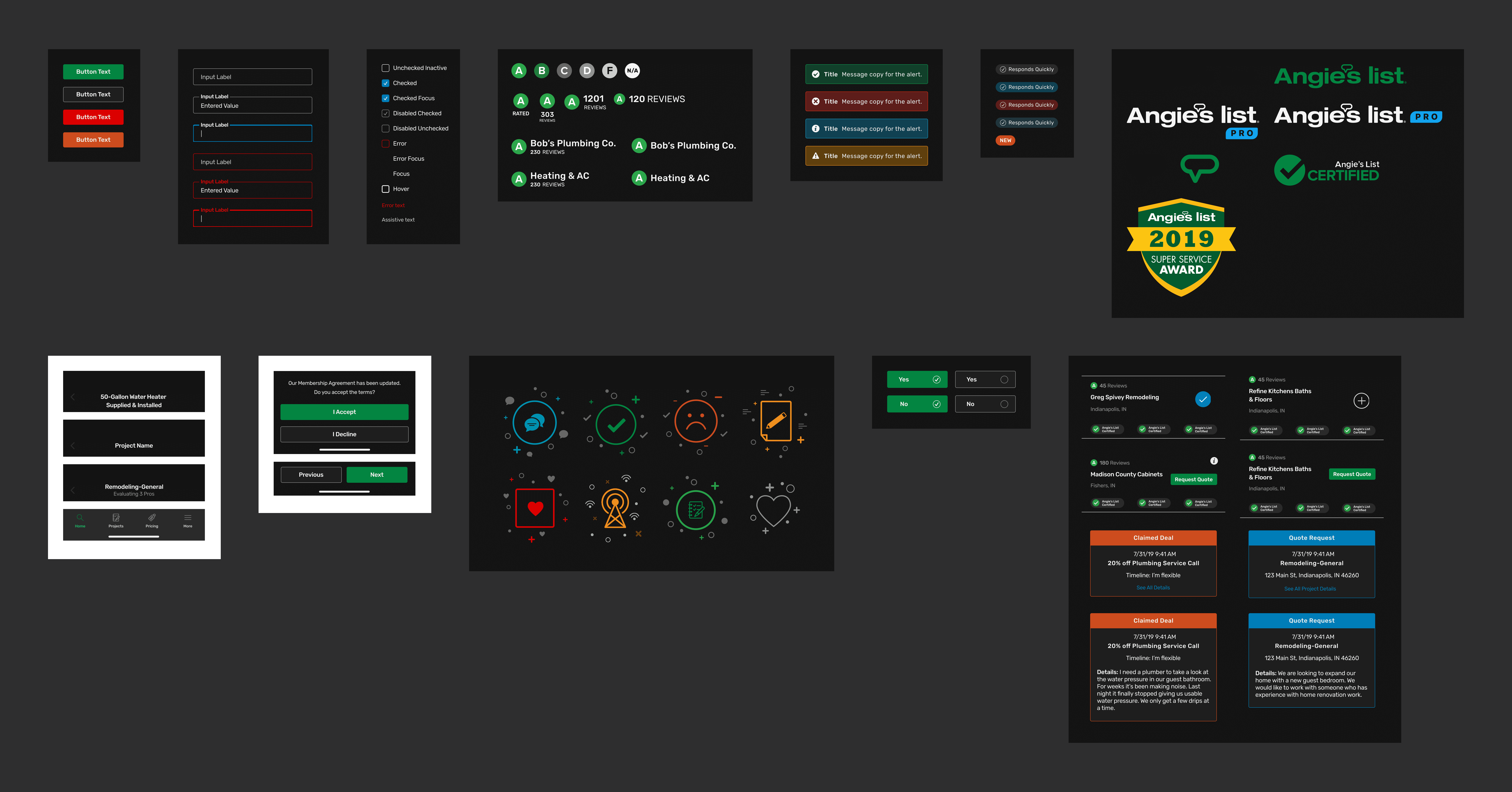 I designed the dark mode experience for the Angi mobile app to improve usability in low-light environments for both homeowners and home service pros. The work involved redefining the color system, ensuring strong contrast and readability across key flows, and adapting core experiences so both audiences could seamlessly browse, book, and manage services in dark mode.