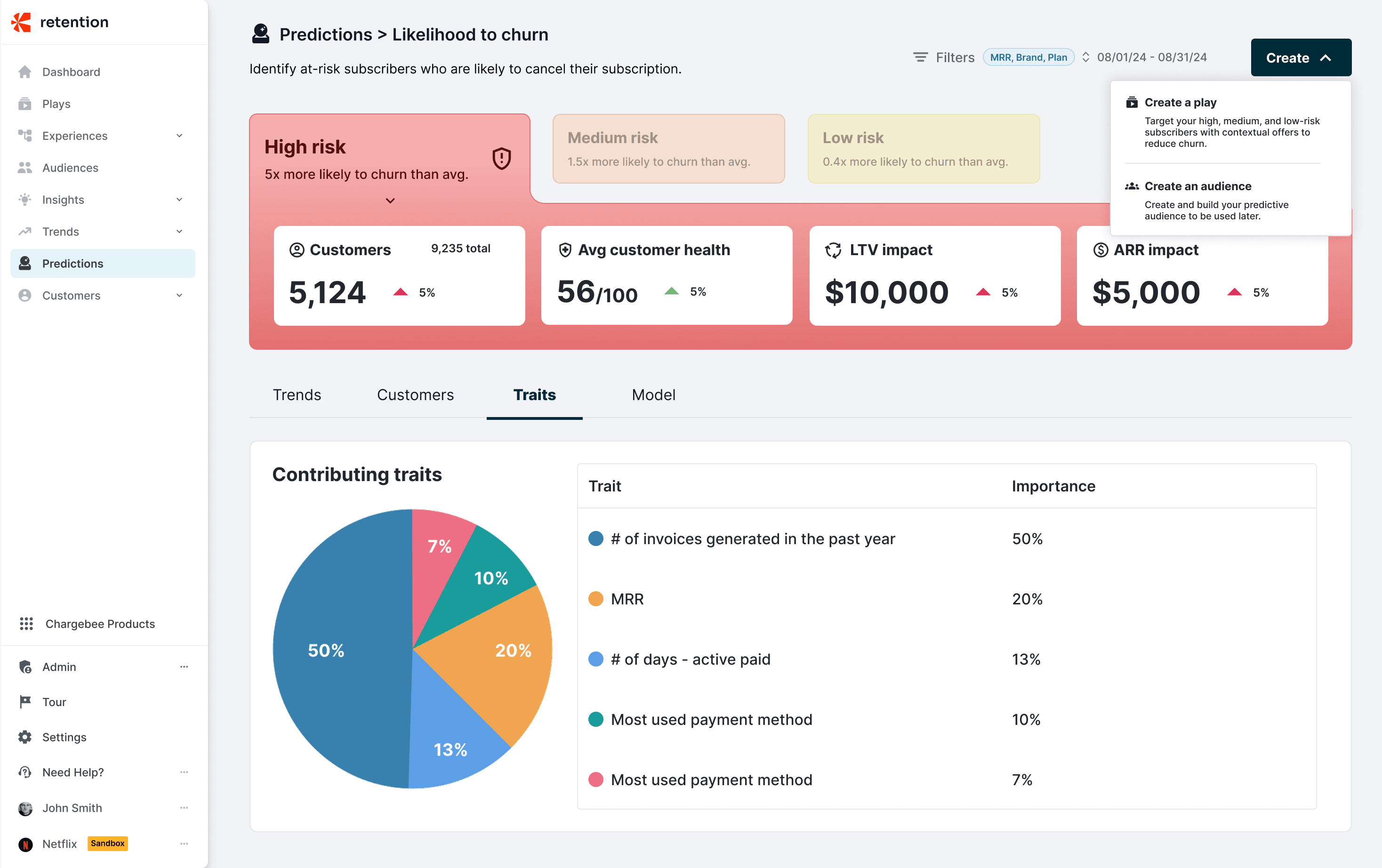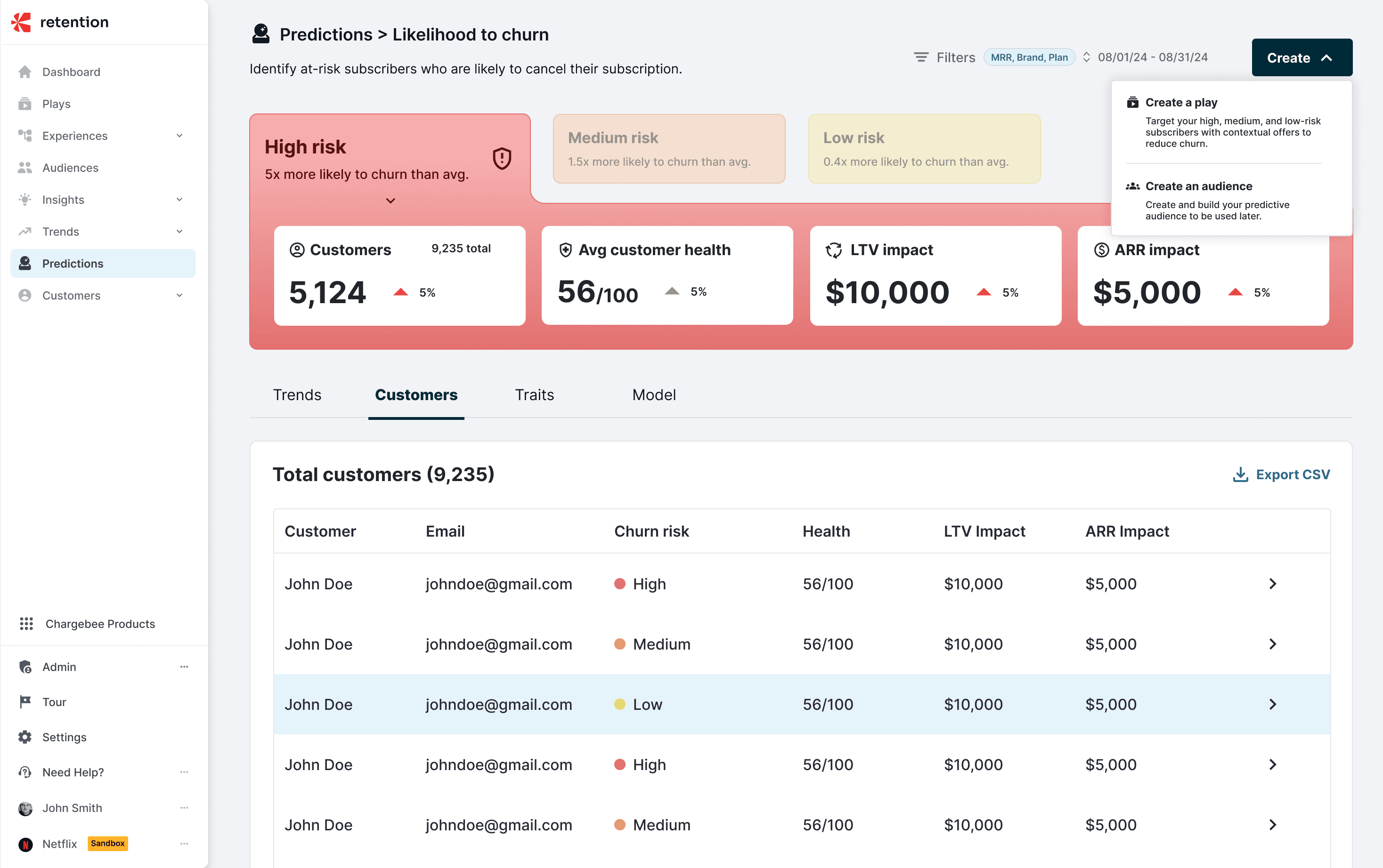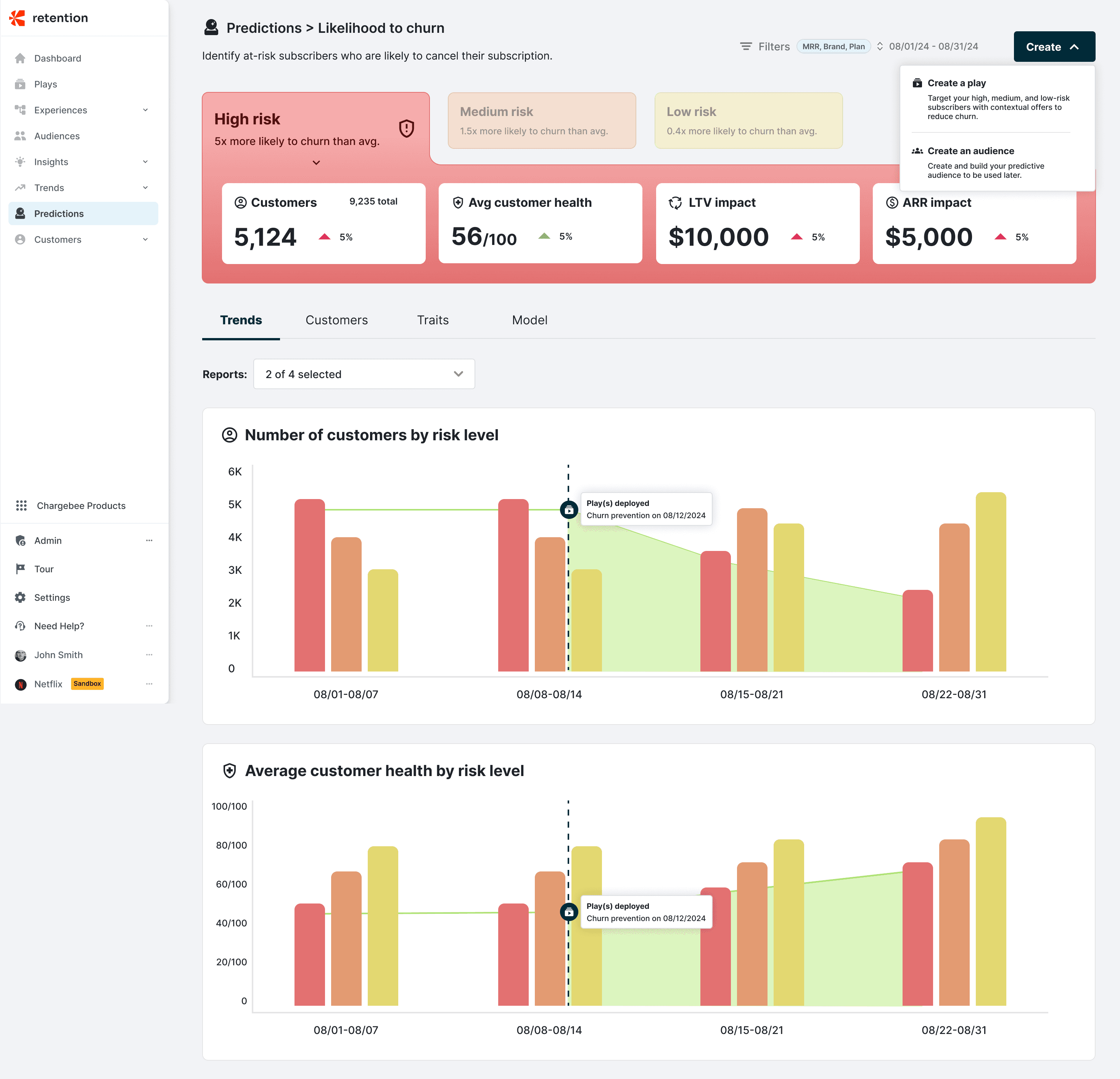 I designed the predictive churn scores experience to help growth managers proactively identify customers most likely to churn. By translating complex behavioral and billing signals into clear risk scores and actionable segments, the product enables teams to intervene earlier with targeted retention strategies. Full case study available upon request.