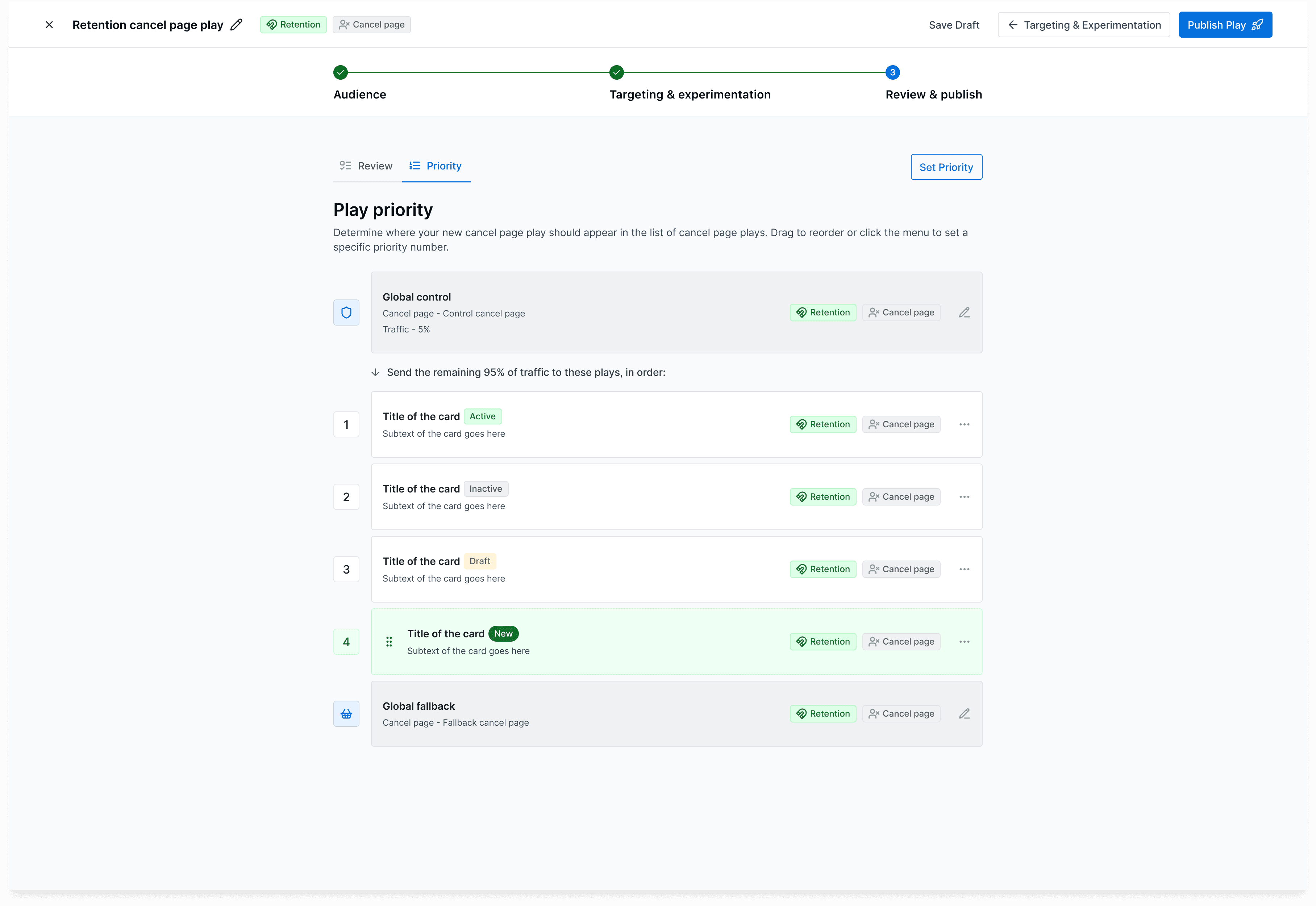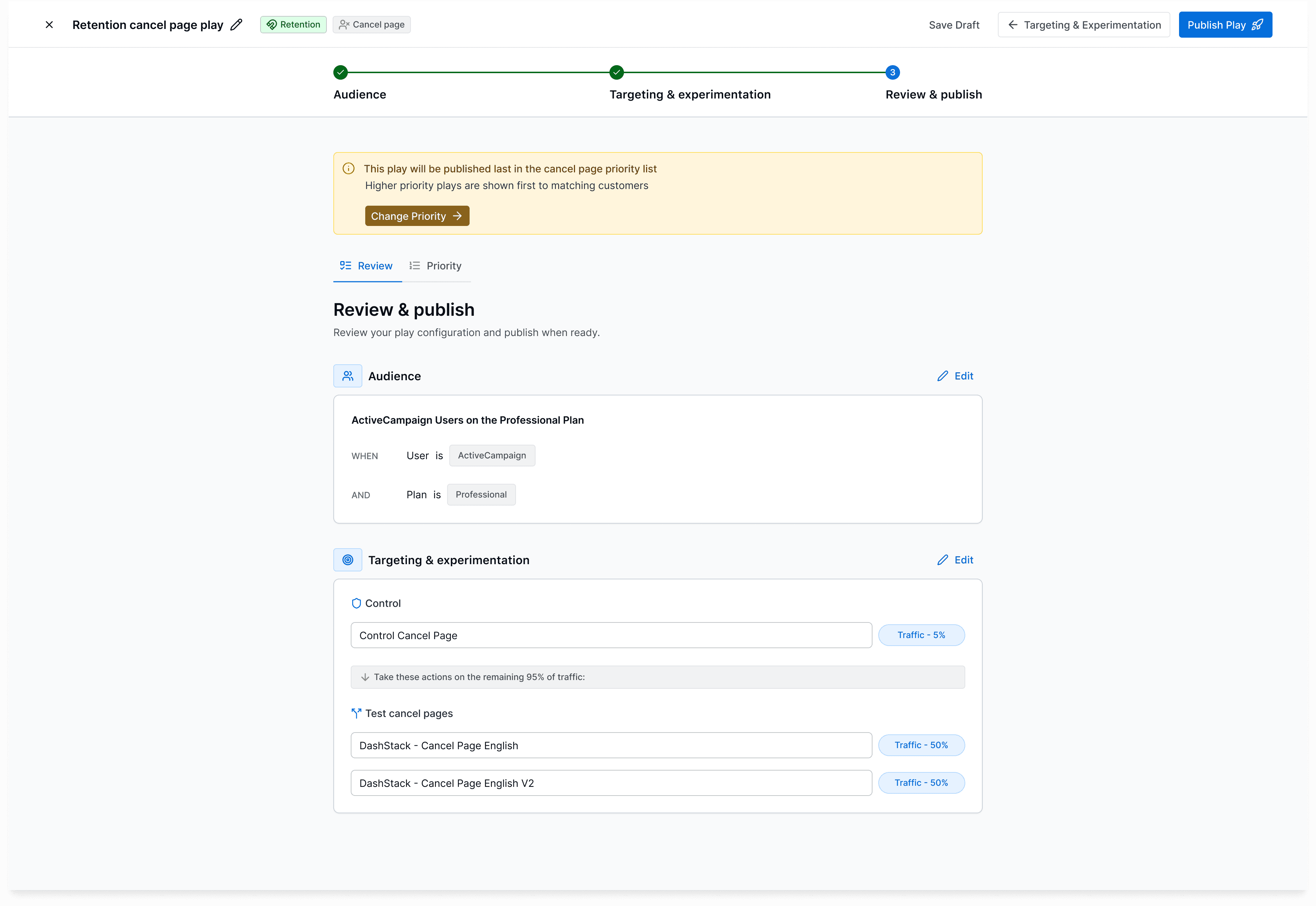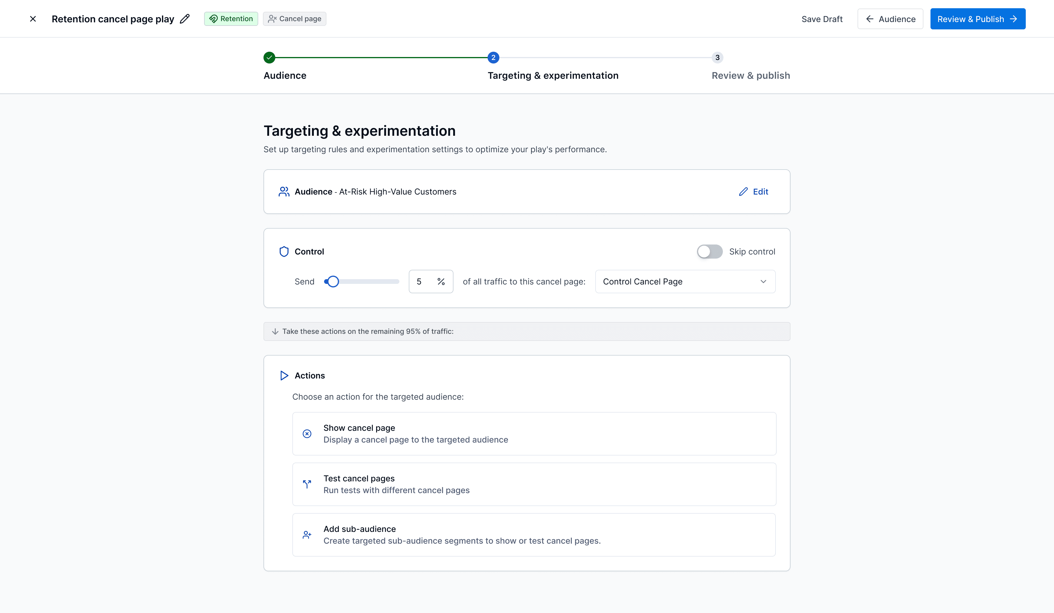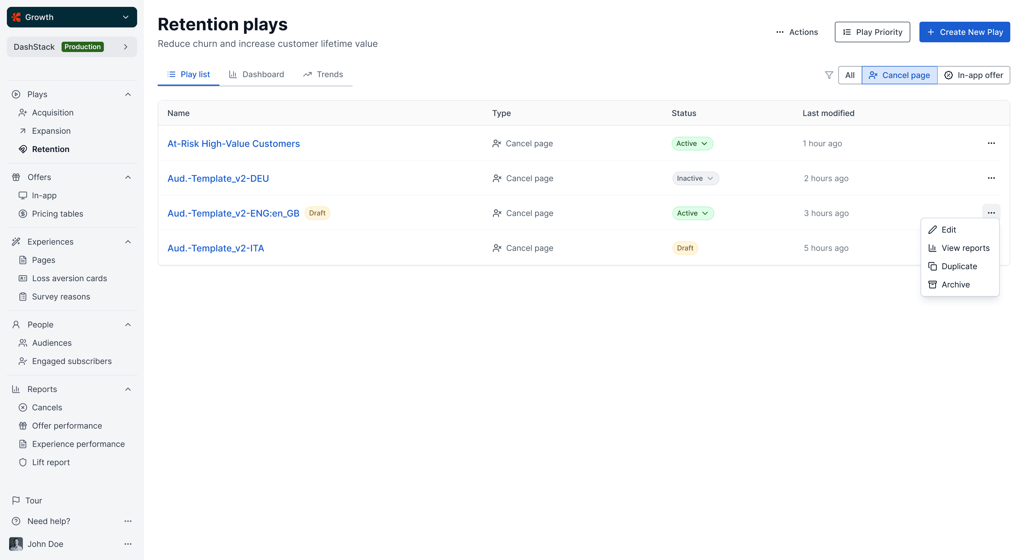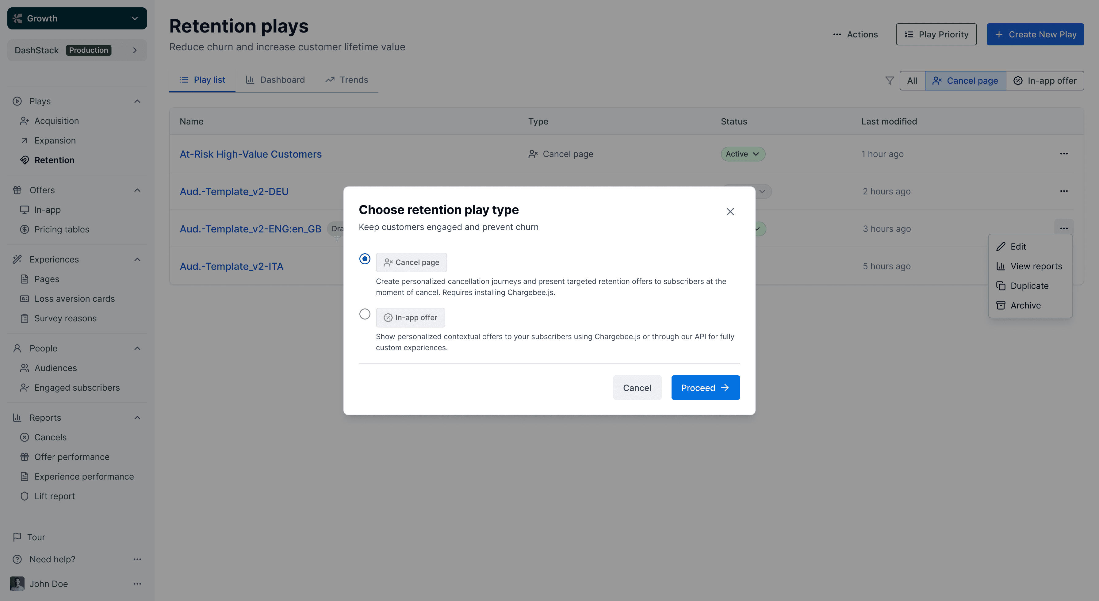 I designed lifecycle plays to help growth managers automate targeted customer journeys across the subscription lifecycle of acquisition, retention, and expansion. The experience makes it easy to trigger personalized offers, pricing tables, and cancel pages based on customer behavior, so teams can deliver the right experience at the right moment to drive growth. Full case study available upon request.